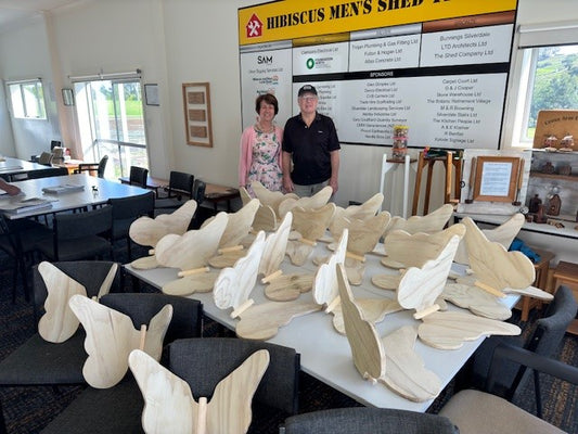This beautiful sign for the garden of a resident of Orewa. Made from Rimu by shed member Geoff Leigh. Note: Part of the coordinates have been redacted for privacy purposes.